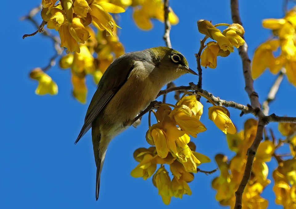 Greg Ball – Tauhou in kowhai – Projim (C)